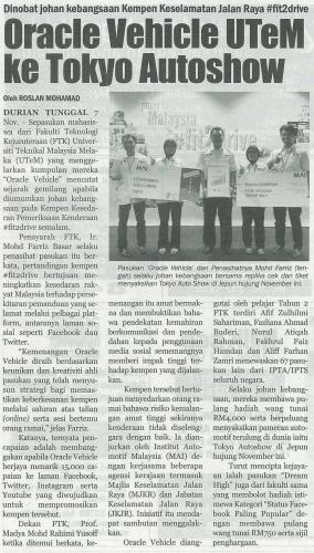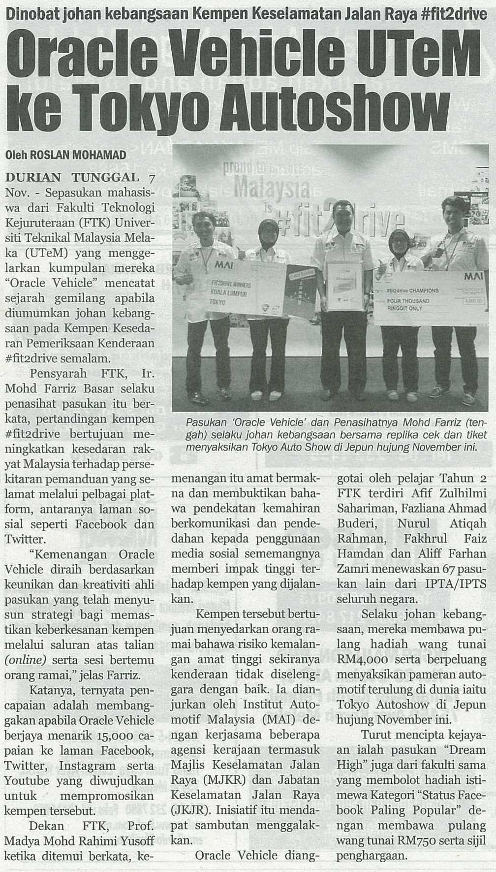 Dinobat johan kebangsaan Kempen Keselamatan Jalan Raya #fit2drive Oracle Vehicle UTeM ke Tokyo Autoshow