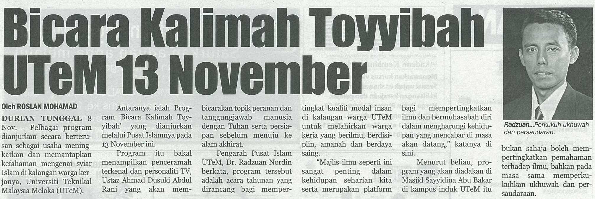 Bicara Kalimah Toyyibah UTeM 13 November