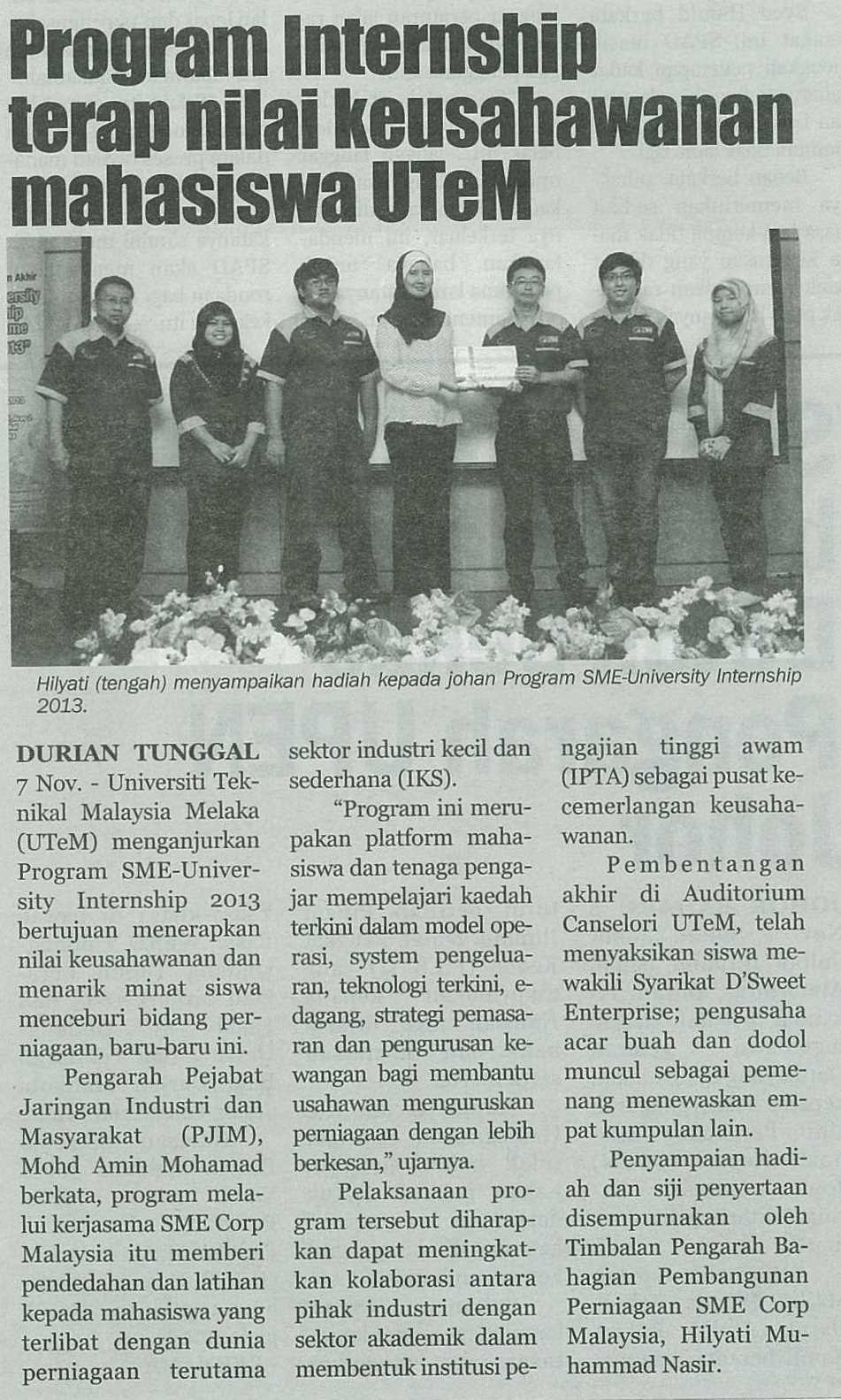 Program Internship terap nilai keusahawanan mahasiswa UTeM