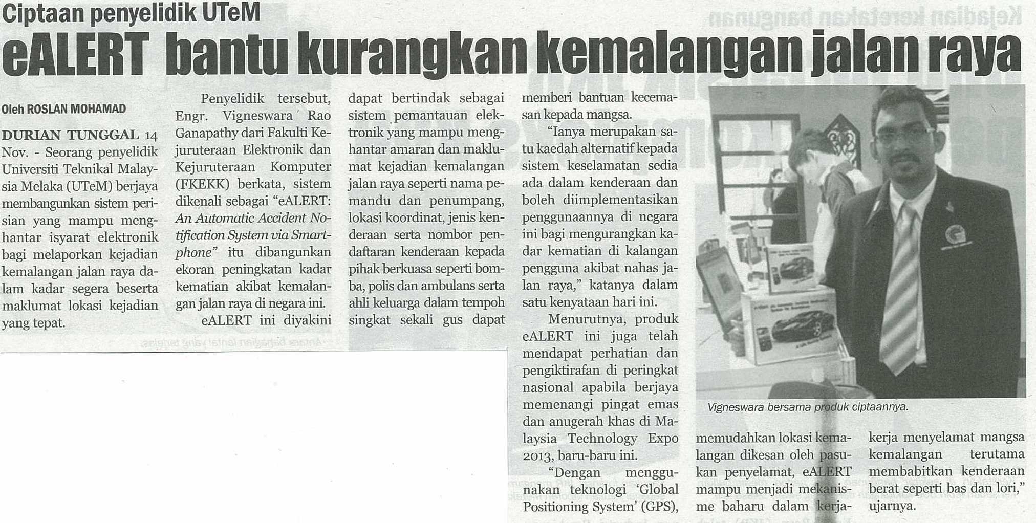 Ciptaan penyelidik UTeM eALERT bantu kurangkan kemalangan jalan raya