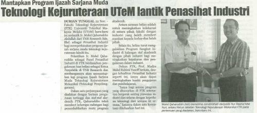 Mantapkan Program Ijazah Sarjana Muda Teknologi Kejuruteraan UTeM lantik Penasihat Industri