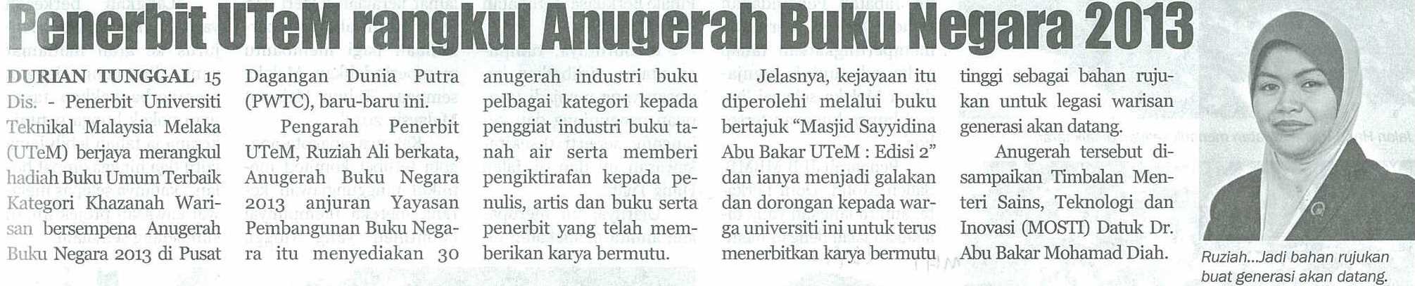 Penerbit UTeM rangkul Anugerah Buku Negara 2013
