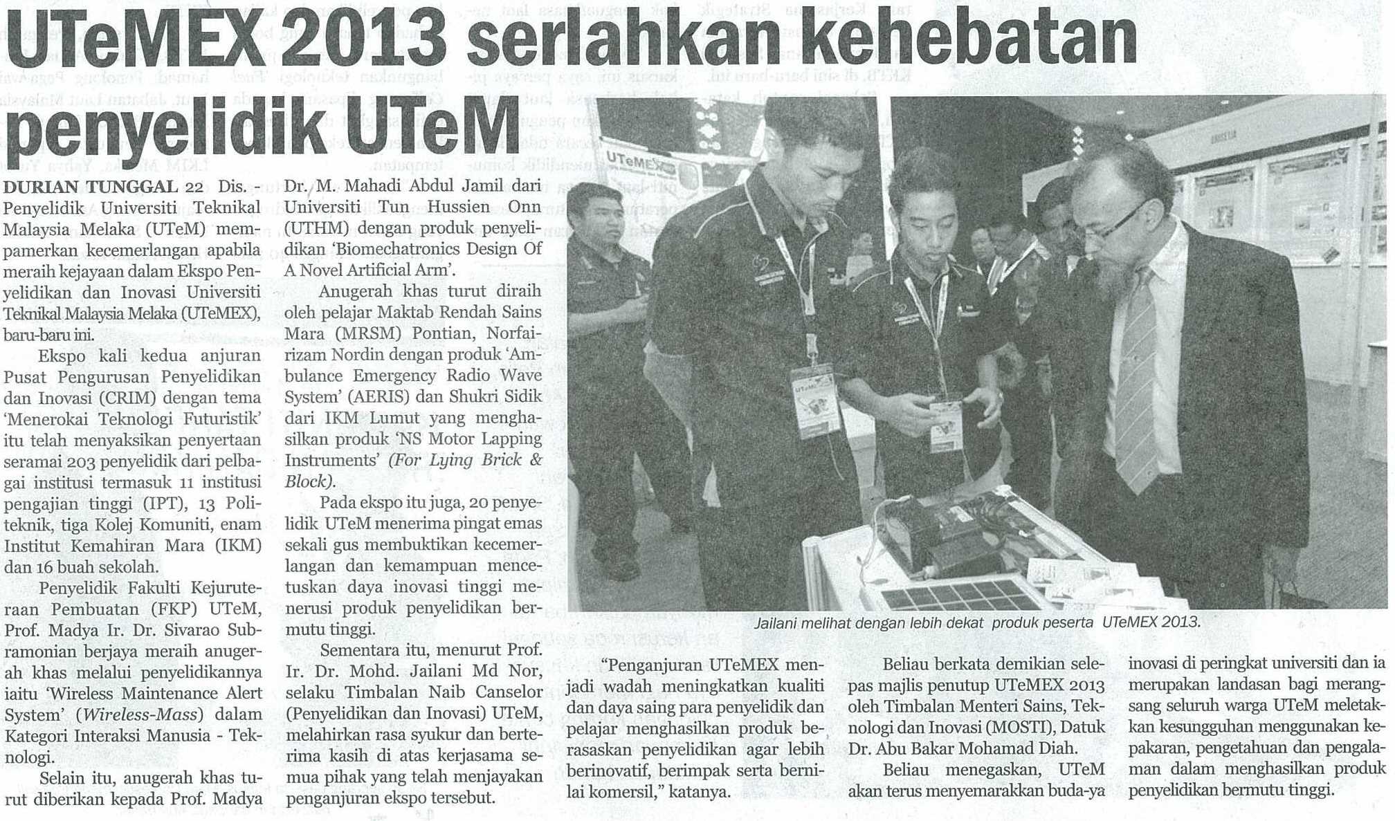 UTeMEX 2013 serlahkan kehebatan penyelidik UTeM