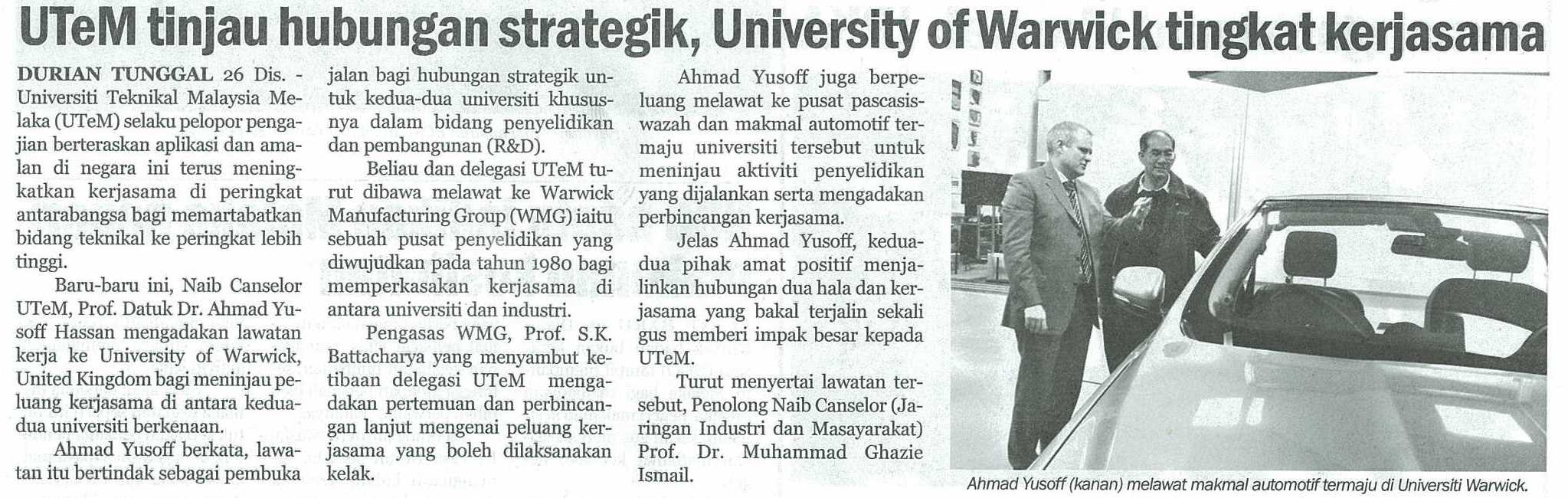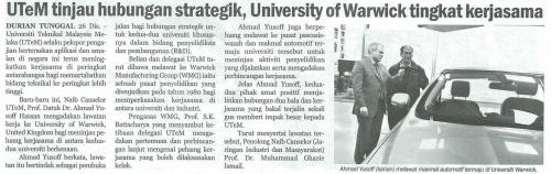 UTeM tinjau hubungan strategik, University of Warwick tingkat kerjasama