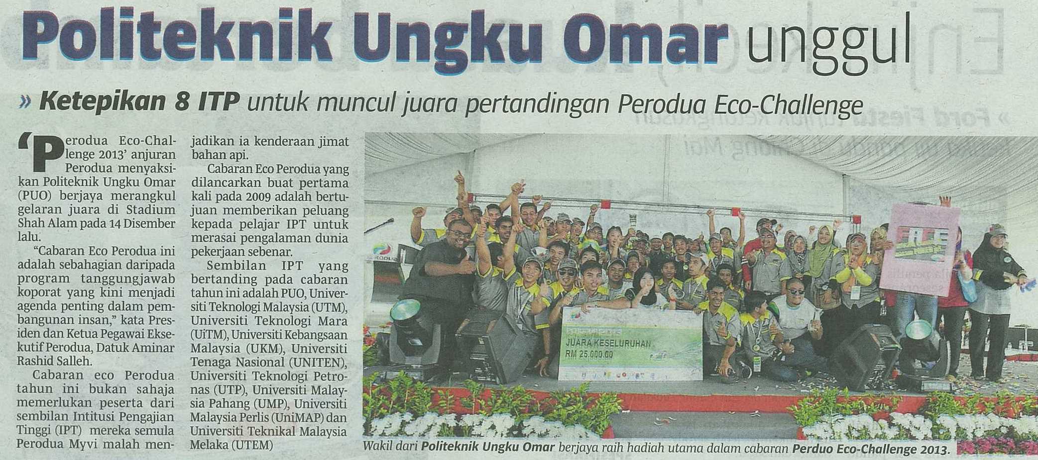 Politeknik Ungku Omar unggul, ketepikan 8 ITP untuk muncul juara pertandingan Perodua Eco-Challenge