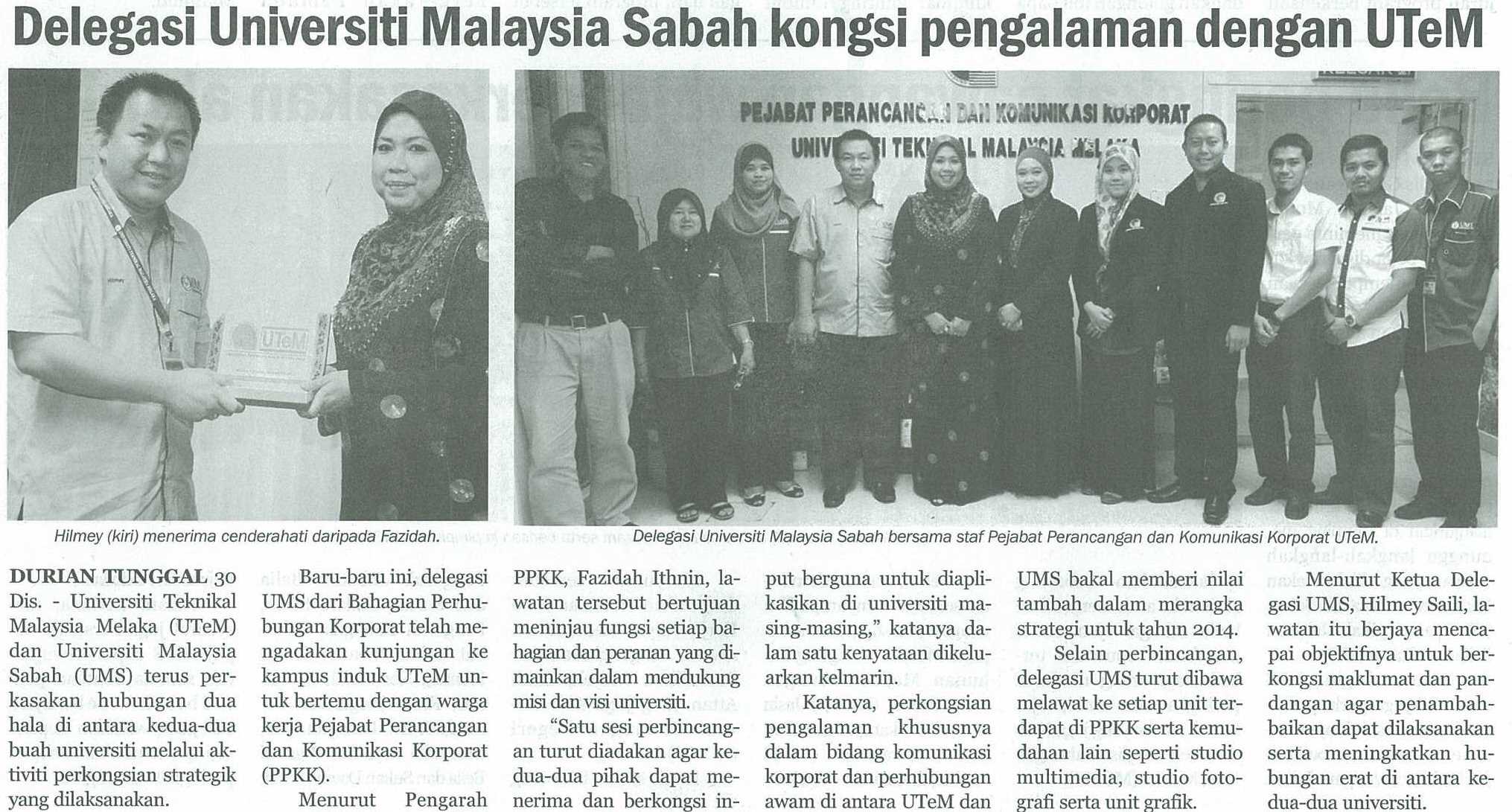 Delegasi Universiti Malaysia Sabah kongsi pengalaman dengan UTeM