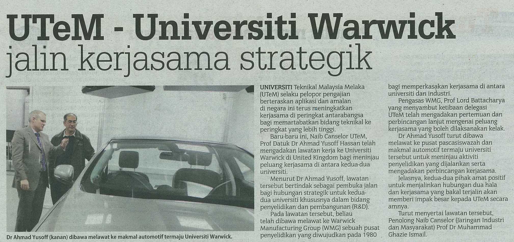UTeM - Universiti Warwick jalin kerjasama strategik