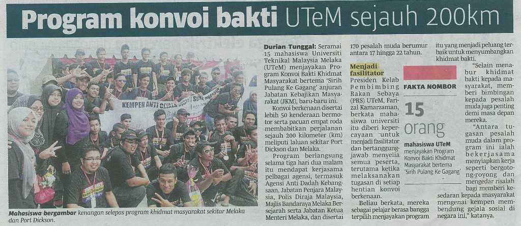 Program konvoi bakti UTeM sejauh 200 km