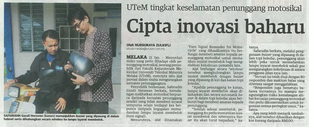 UTeM tingkat keselamatan penunggang motosikal cipta inovasi baharu