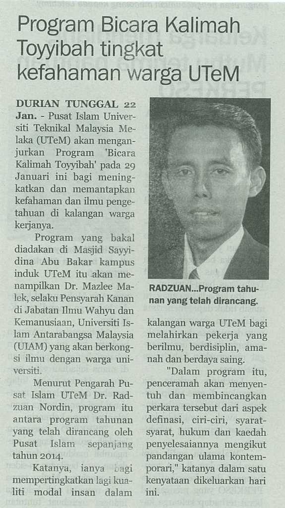 Program Bicara Kalimah Toyyibah tingkat kefahaman warga UTeM