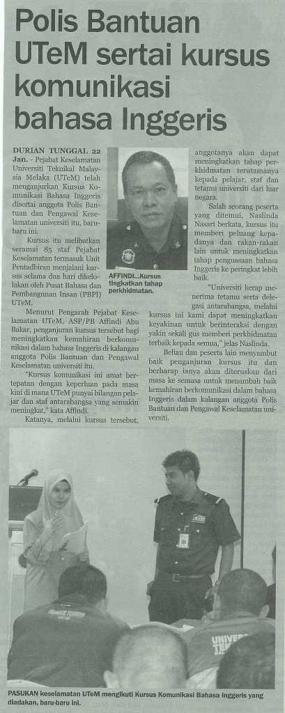Polis Bantuan UTeM sertai kursus komunikasi Bahasa Inggeris
