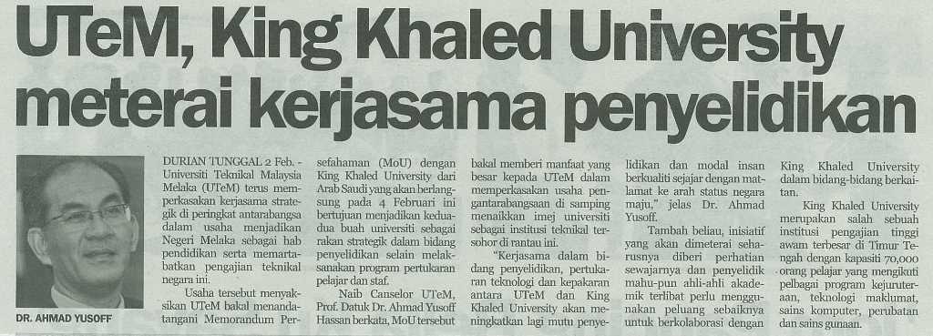 UTeM, King Khaled University meterai kerjasama penyelidikan