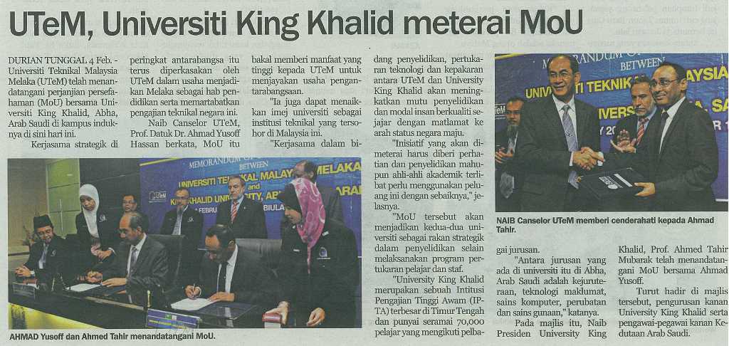 UTeM, Universiti King Khalid meterai Mou
