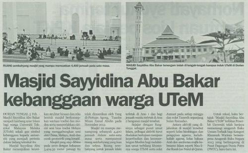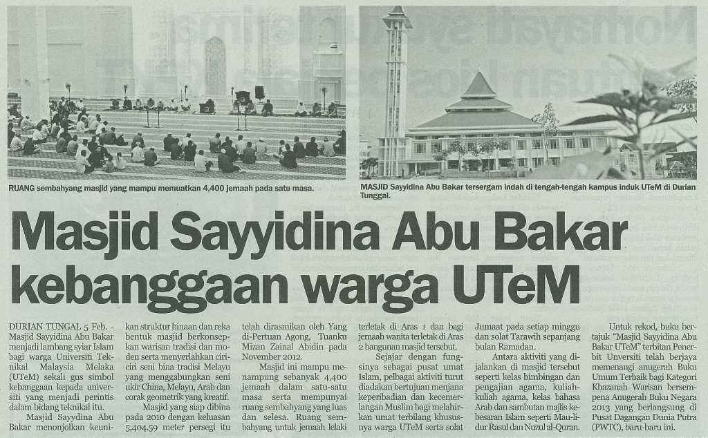 Masjid Sayyidina Abu Bakar kebanggaan warga UTeM