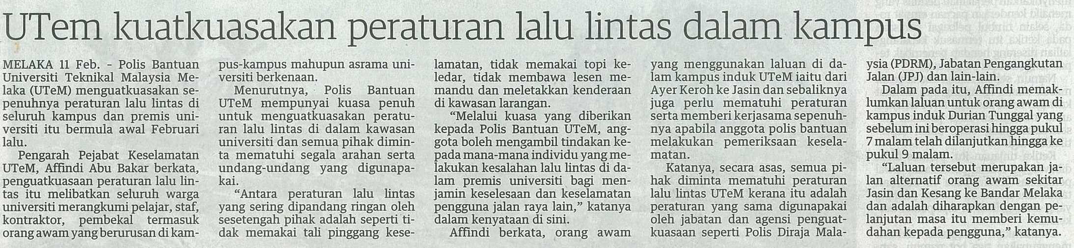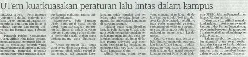 UTeM kuatkuasakan peraturan lalulintas dalam kampus