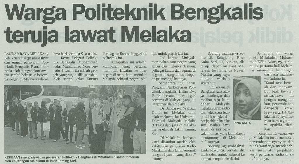 Warga Politeknik Bengkalis teruja lawat Melaka