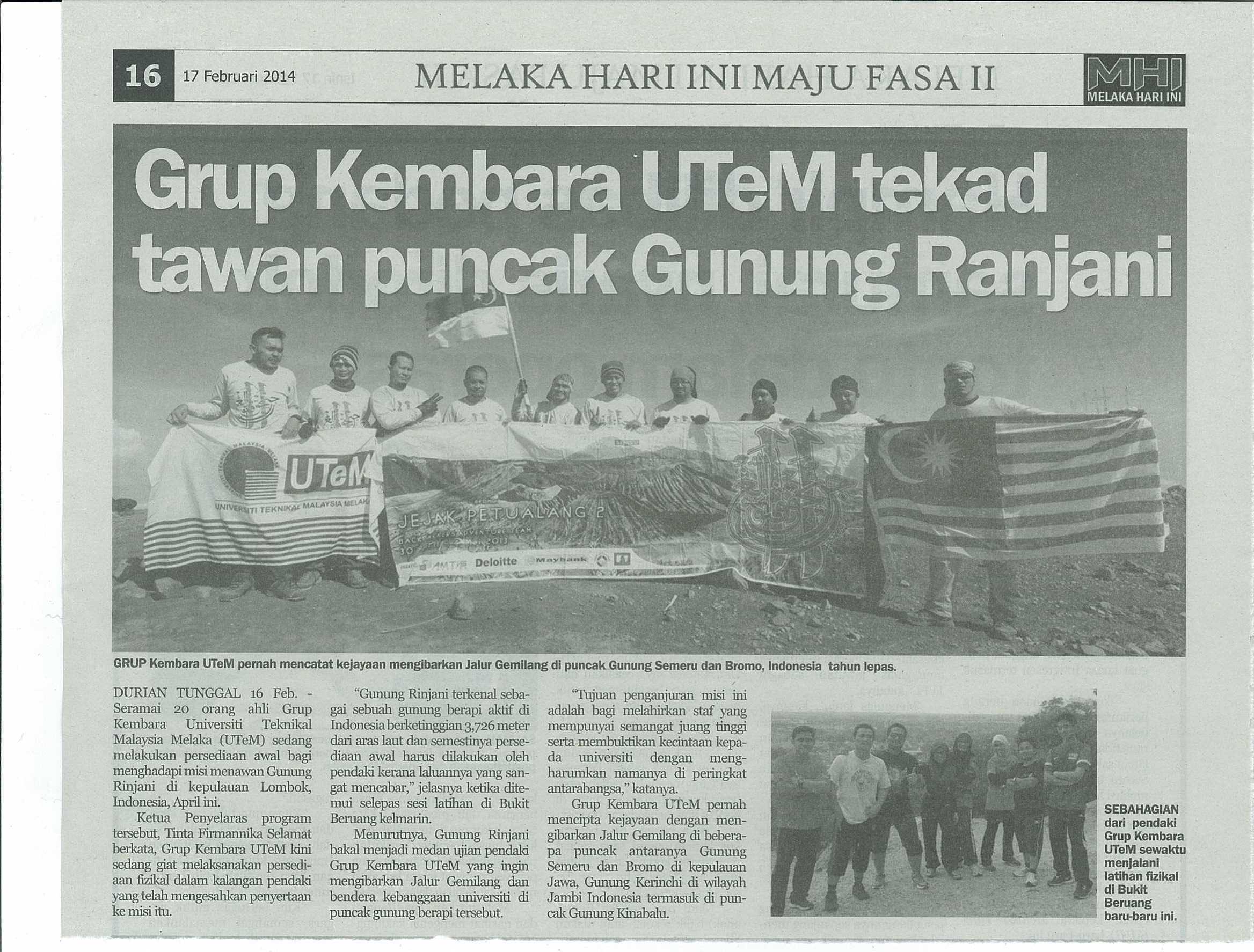 Grup Kembara UTeM tekad tawan puncak Gunung Ranjani