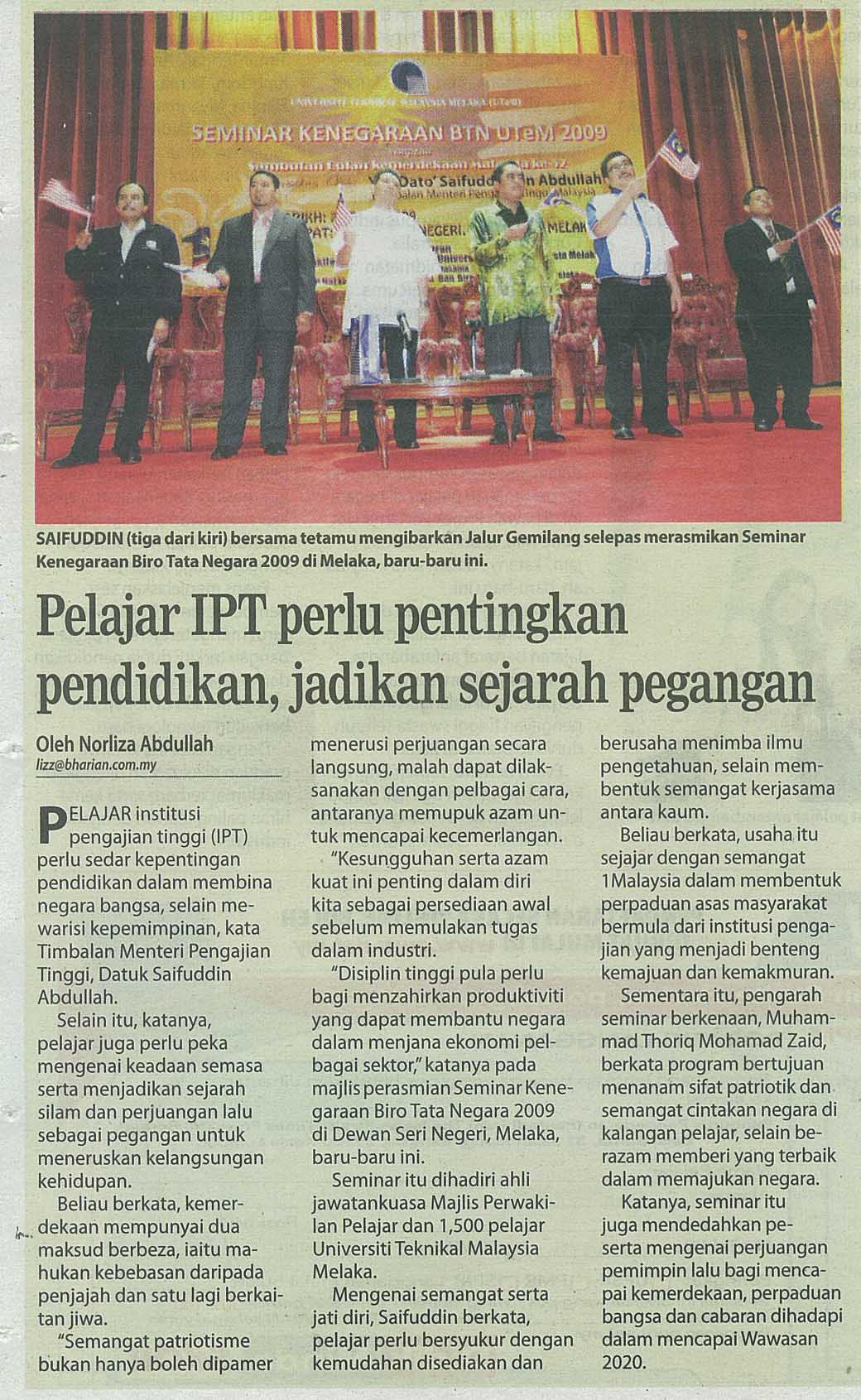 Pelajar IPT Perlu Pentingkan Pendidikan, Jadikan Sejarah Pegangan