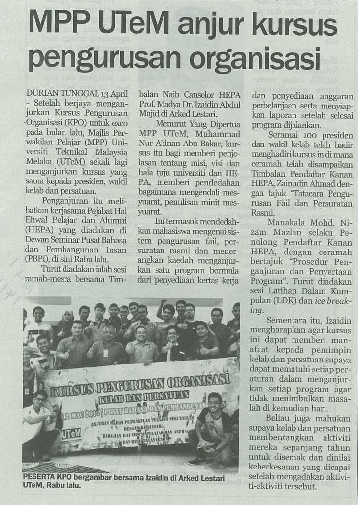 MPP UTeM anjur kursus Pengurusan Organisasi