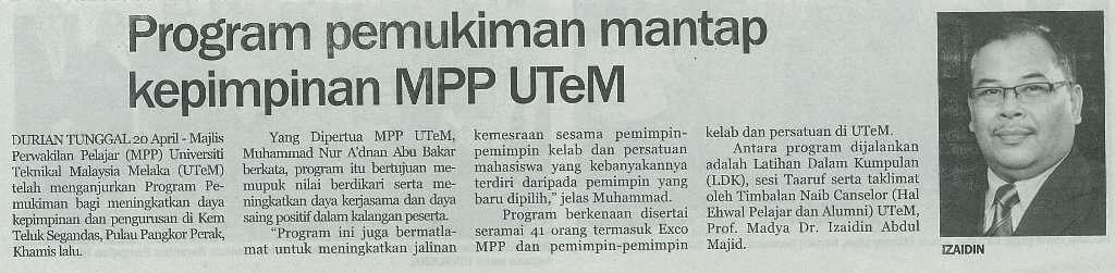 program pemukiman mantap kepimpinan MPP UTeM
