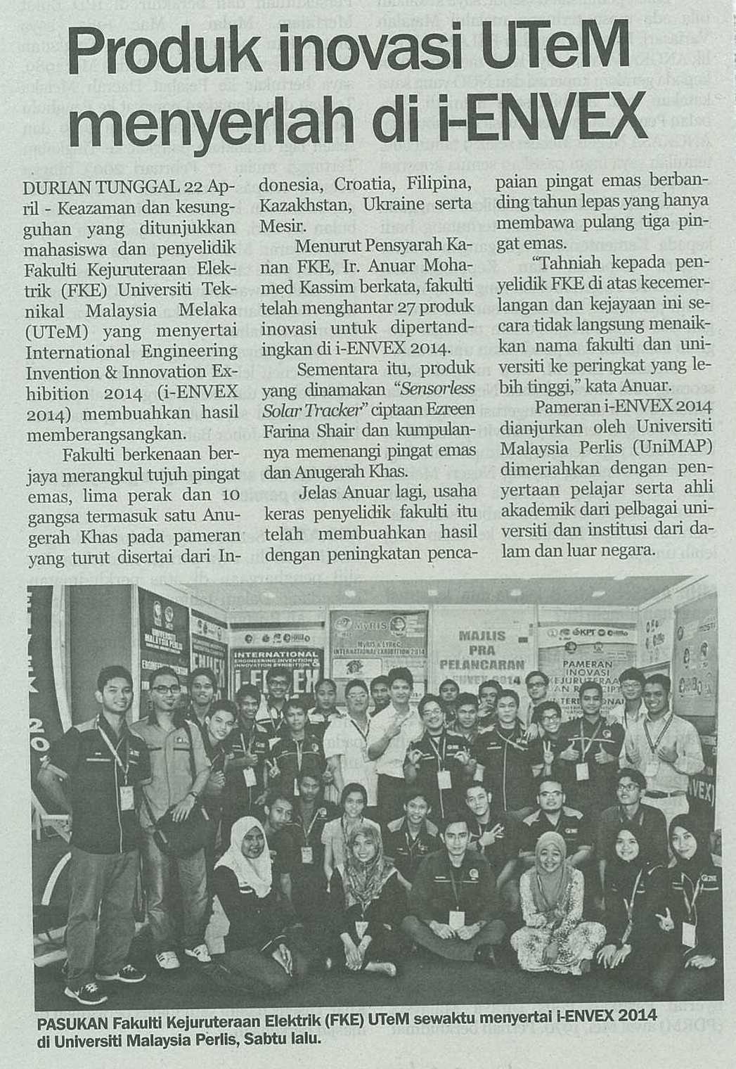 Produck inovasi UTeM menyerlah di I-ENVEX