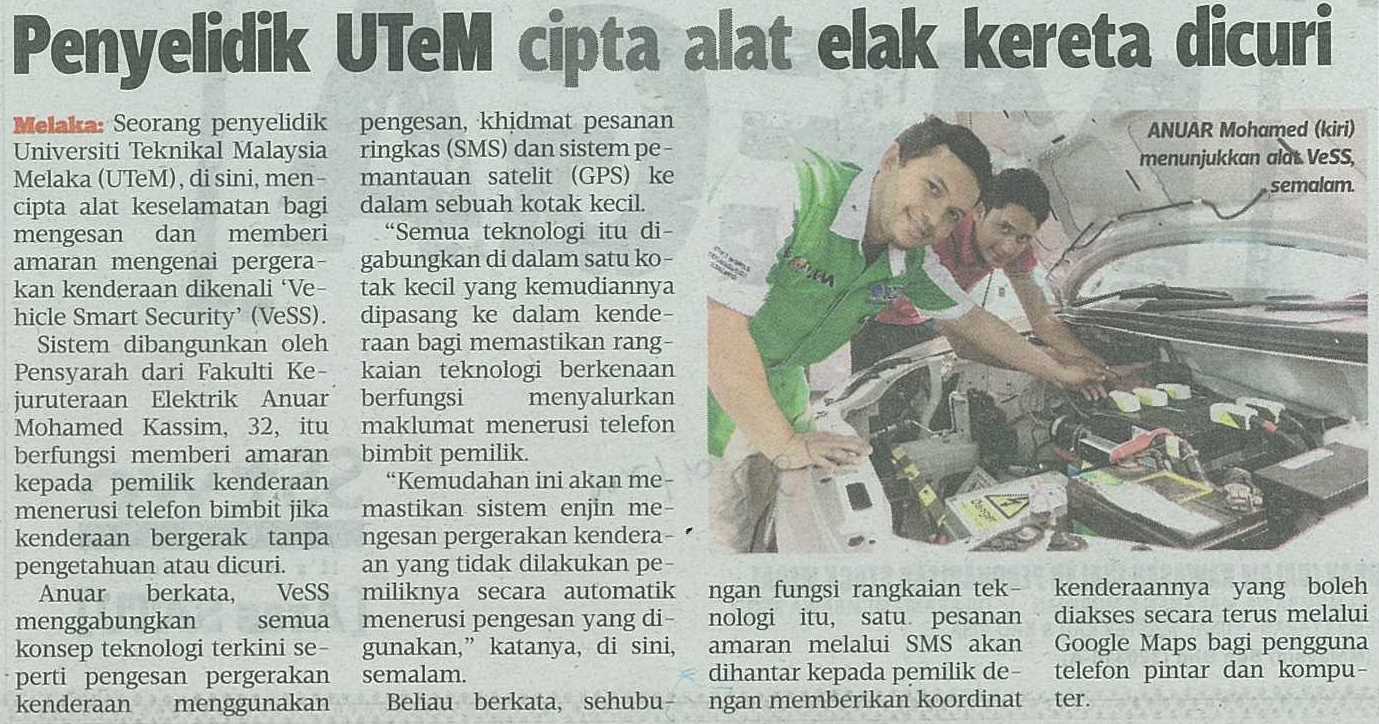 Penyelidik UTeM cipta alat elak kereta dicuri