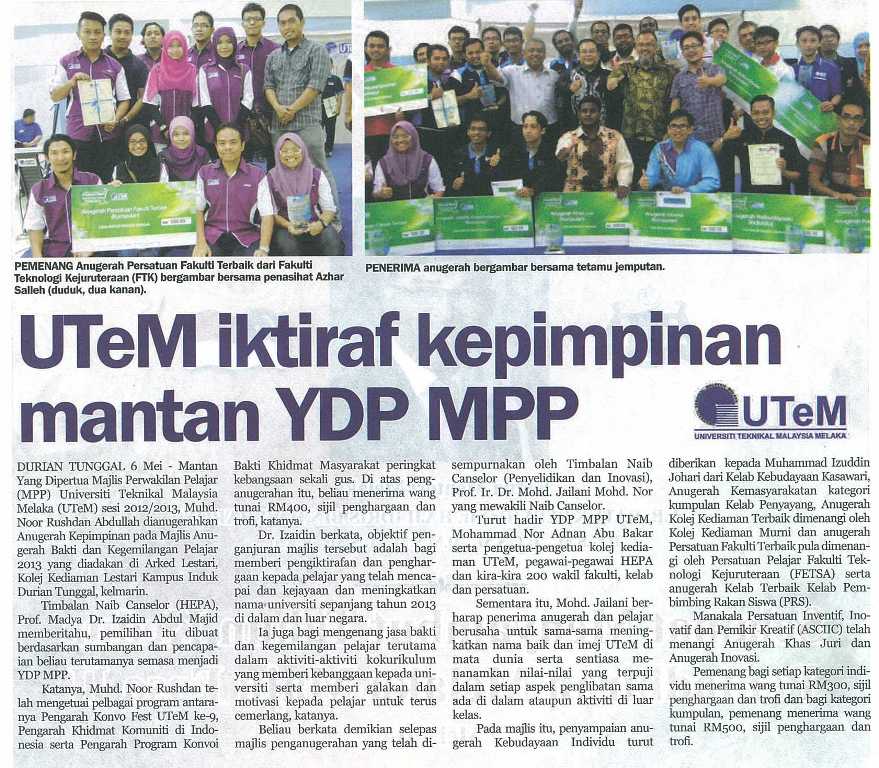 UTeM iktiraf kepimpinan mantan YDP MPP