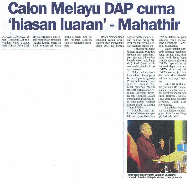 Calon Melayu DAP cuma 'hiasan luaran' Mahathir
