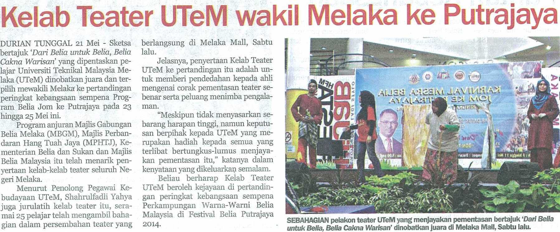 Kelab Teater UTeM wakil Melaka ke Putrajaya