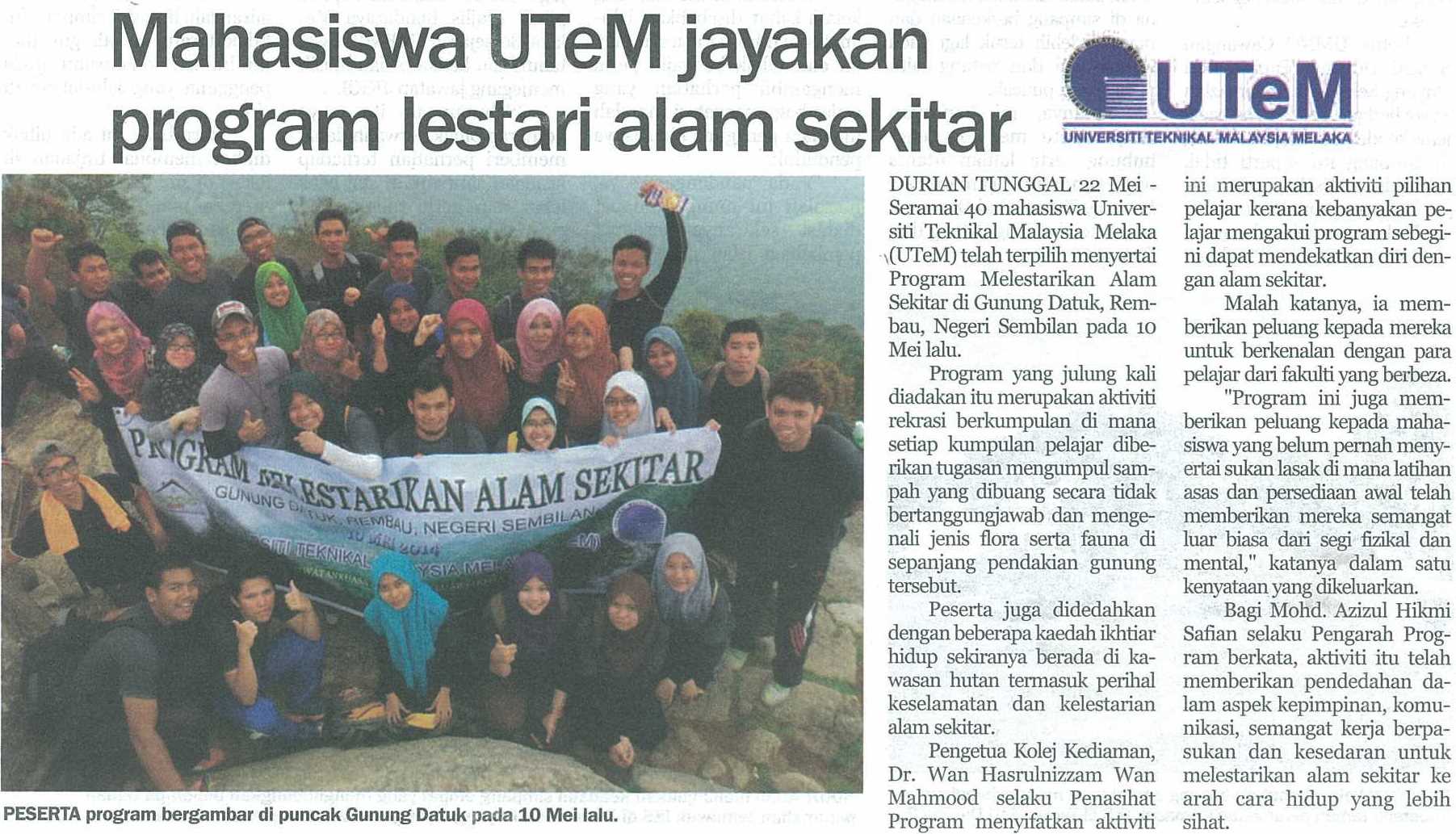 Mahasiswa UTeM jayakan program lestari alam sekitar