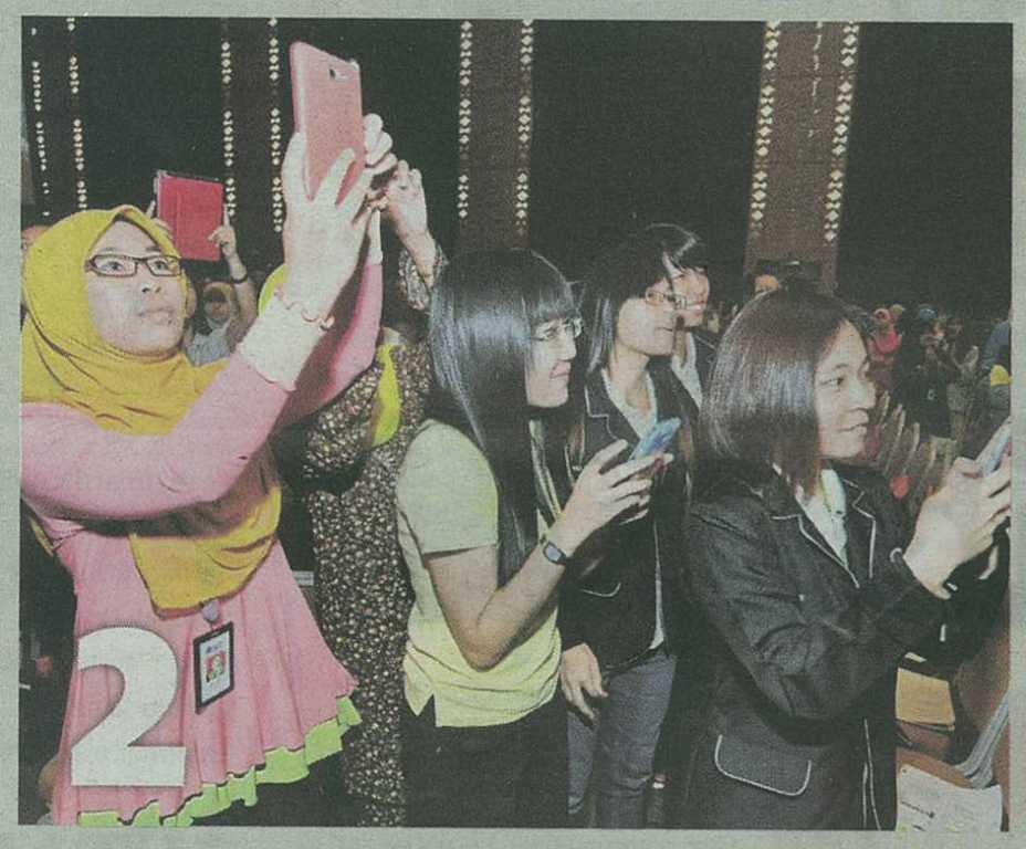 Pelajar Universiti Teknikal Malaysia Melaka (UTeM) tidak melepaskan peluang merakam gambar bekas Perdana Menteri, Tun Dr Mahathir Mohamad pada Majlis Chancellor's Talk di Dewan Besar UTeM.