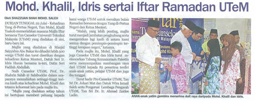 Mohd Khalil, Idris sertai Iftar Ramadan UTeM