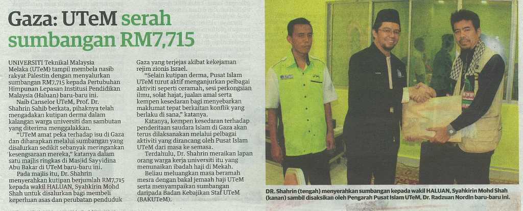 Gaza: UTeM serah sumbangan RM 7,715