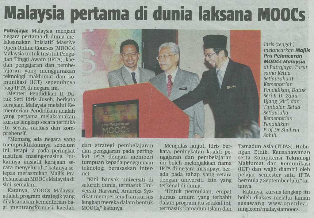 Malaysia pertama di dunia laksana MOOCs