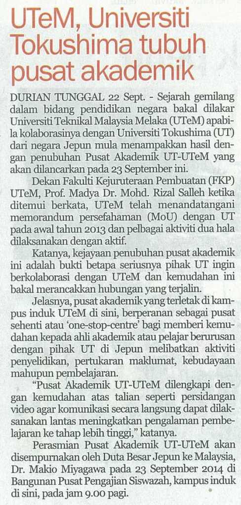 UTeM, Universiti Tokushima tubuh pusat akademik