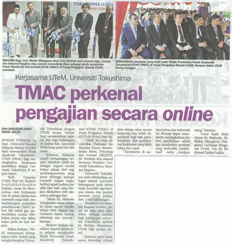 Kerjasama UTeM, Universiti Tokushima TMAC perkenal pengajian secara online