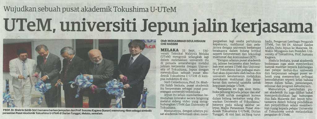 Wujudkan sebuah pusat akademik Tokushima U-UTeM UTeM, universiti Jepun jalin kerjasama.