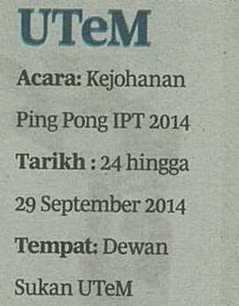 Diari IPT - Kejohanan Ping Pong IPT 2014