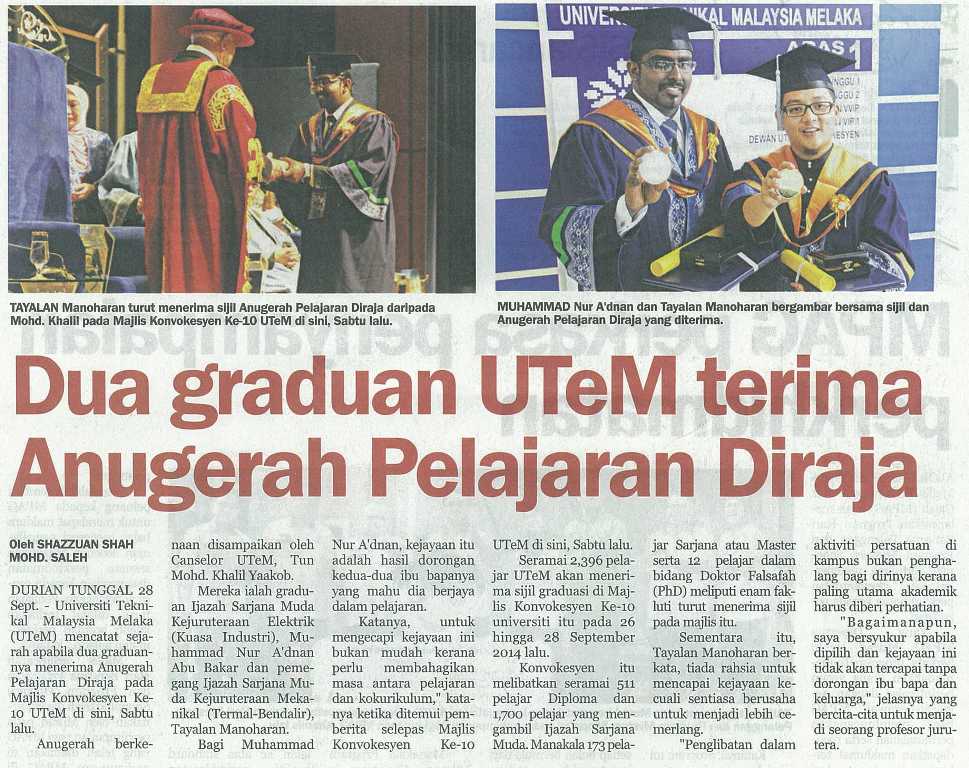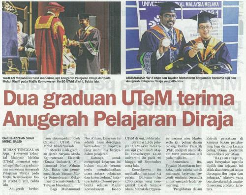 Dua graduan UTeM terima Anugerah Pelajaran Diraja