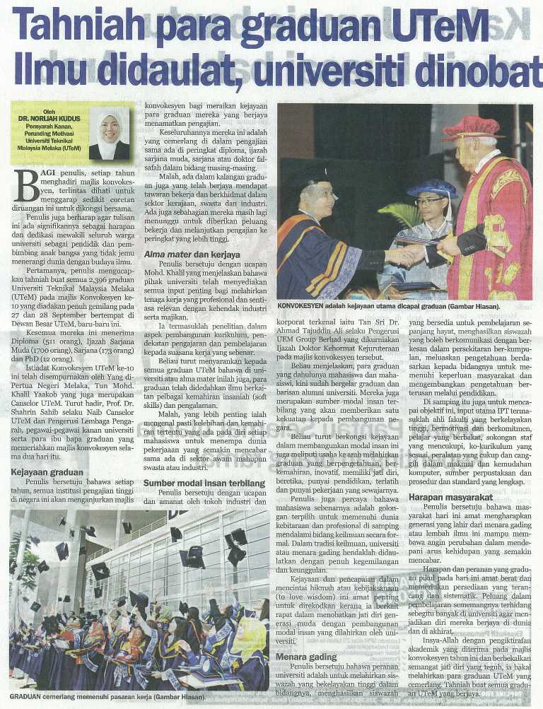 Tahniah para graduan UTeM Ilmu didaulat, universiti dinobat
