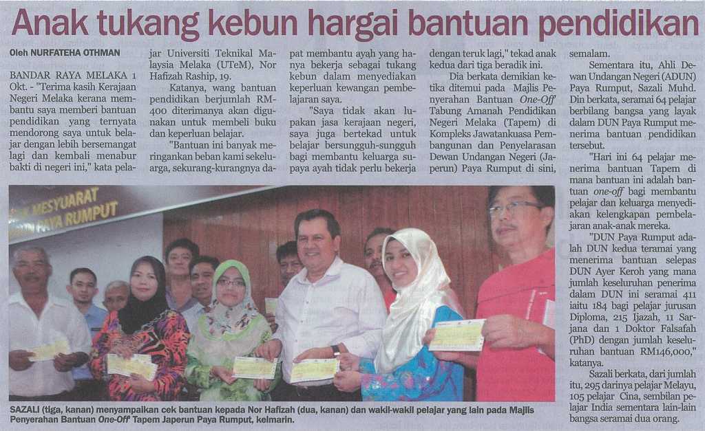 Anak tukang kebun hargai bantuan pendidikan