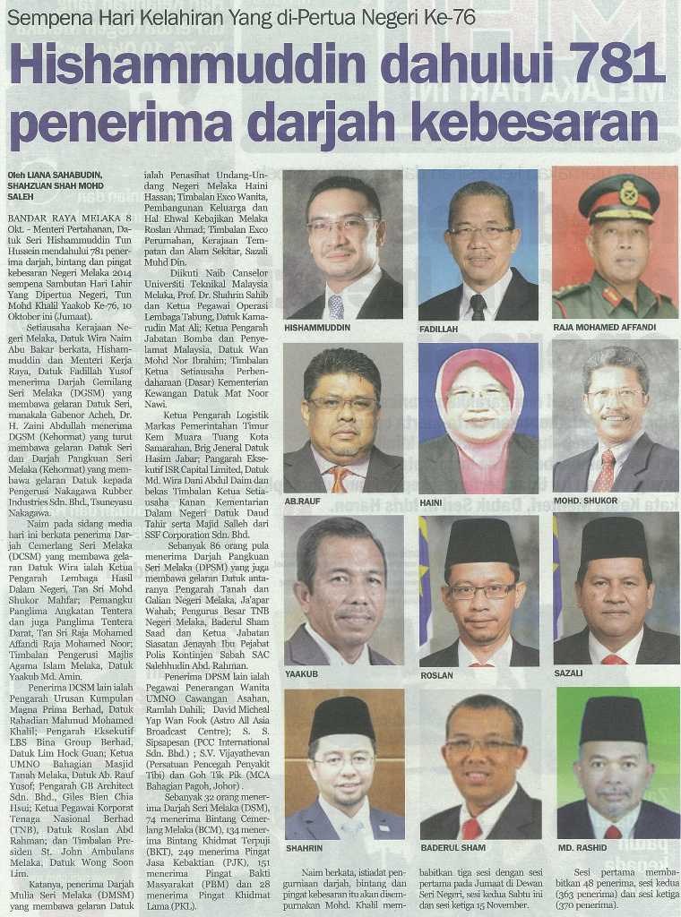 Sempena Hari Kelahiran Yang di-Pertua Negeri Ke-76 Hishammuddin dahului 781 penerima darjah kebesaran