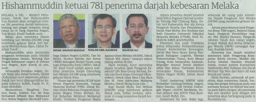 Hishammuddin ketuai 781 penerima darjah kebesaran Melaka