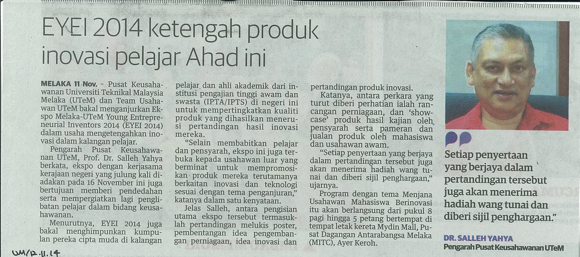 EYEI 2014 ketengah Produk Inovasi pelajar Ahad Ini