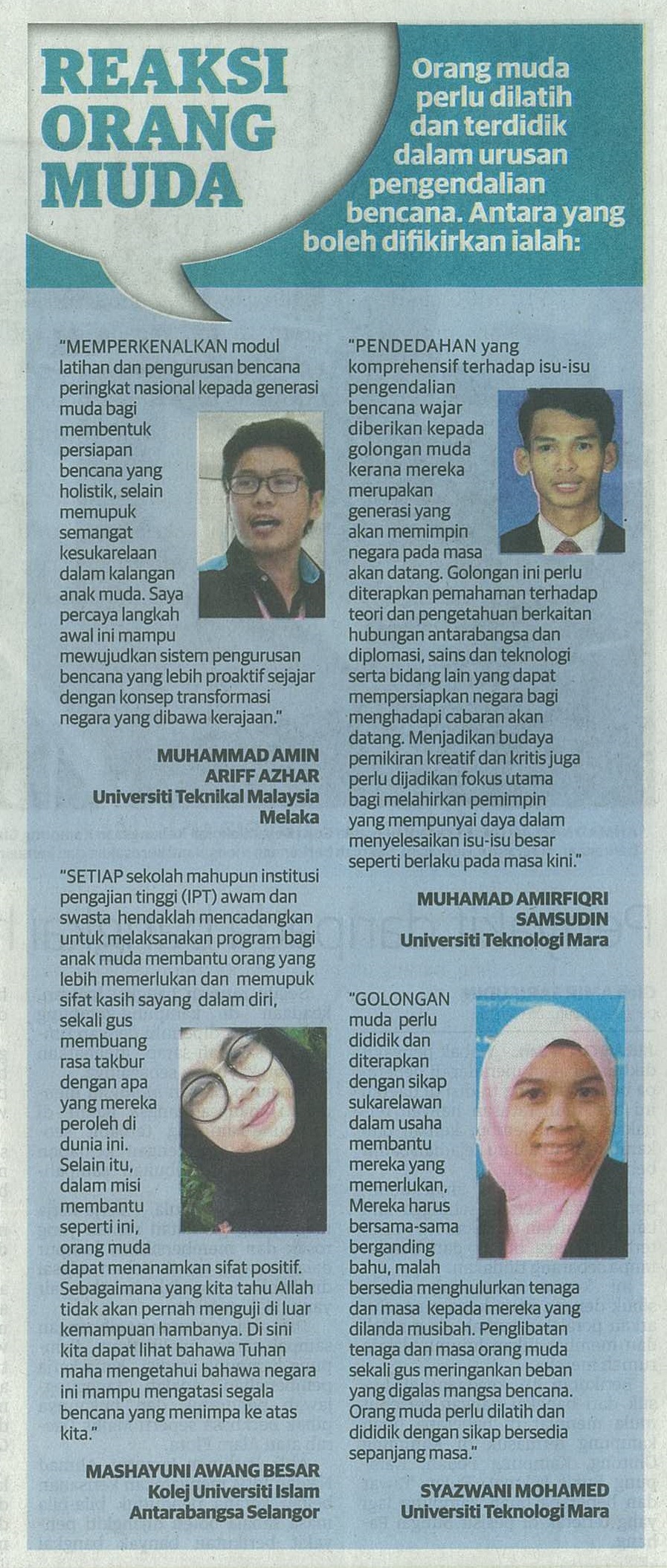 Reaksi Orang Muda: Orang Muda Perlu Dilatih dan Terdidik dalam Urusan Pengendalian Bencana.