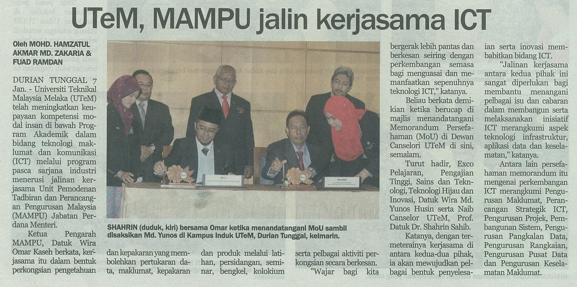 UTeM, MAMPU jalin kerjasama ICT