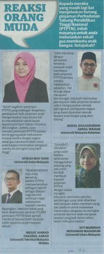 Reaksi Orang Muda: Kepada mereka yang masih lagi liat menjelaskan hutang pinjaman Perbadanan Tabung Pendidikan Tinggi Nasional (PTPTN), inilah masanya untuk anda melunaskan sekali gus membantu anak bangsa. Setujukah?