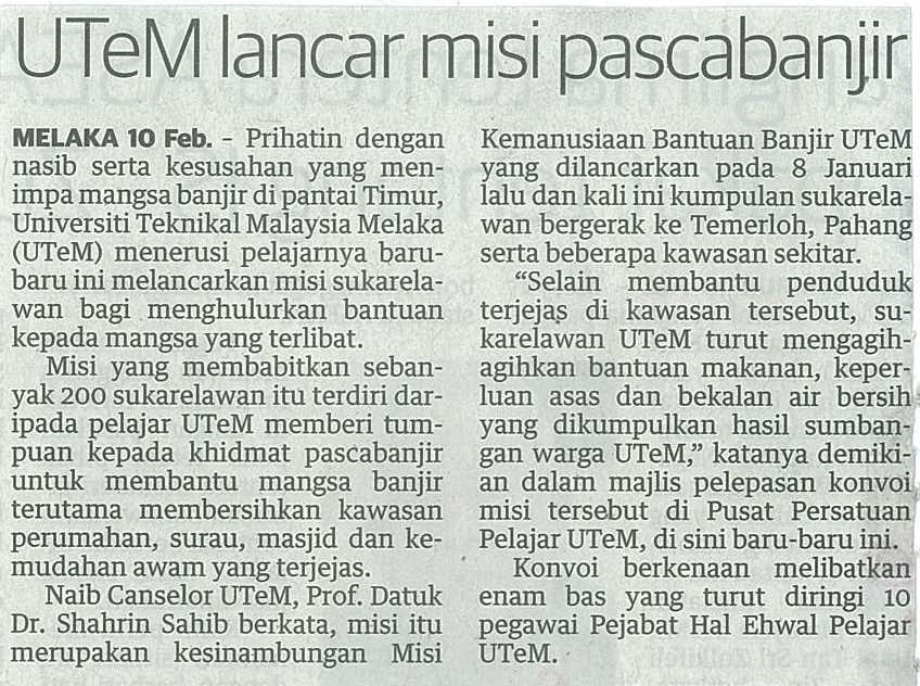 UTeM lancar misi pascabanjir