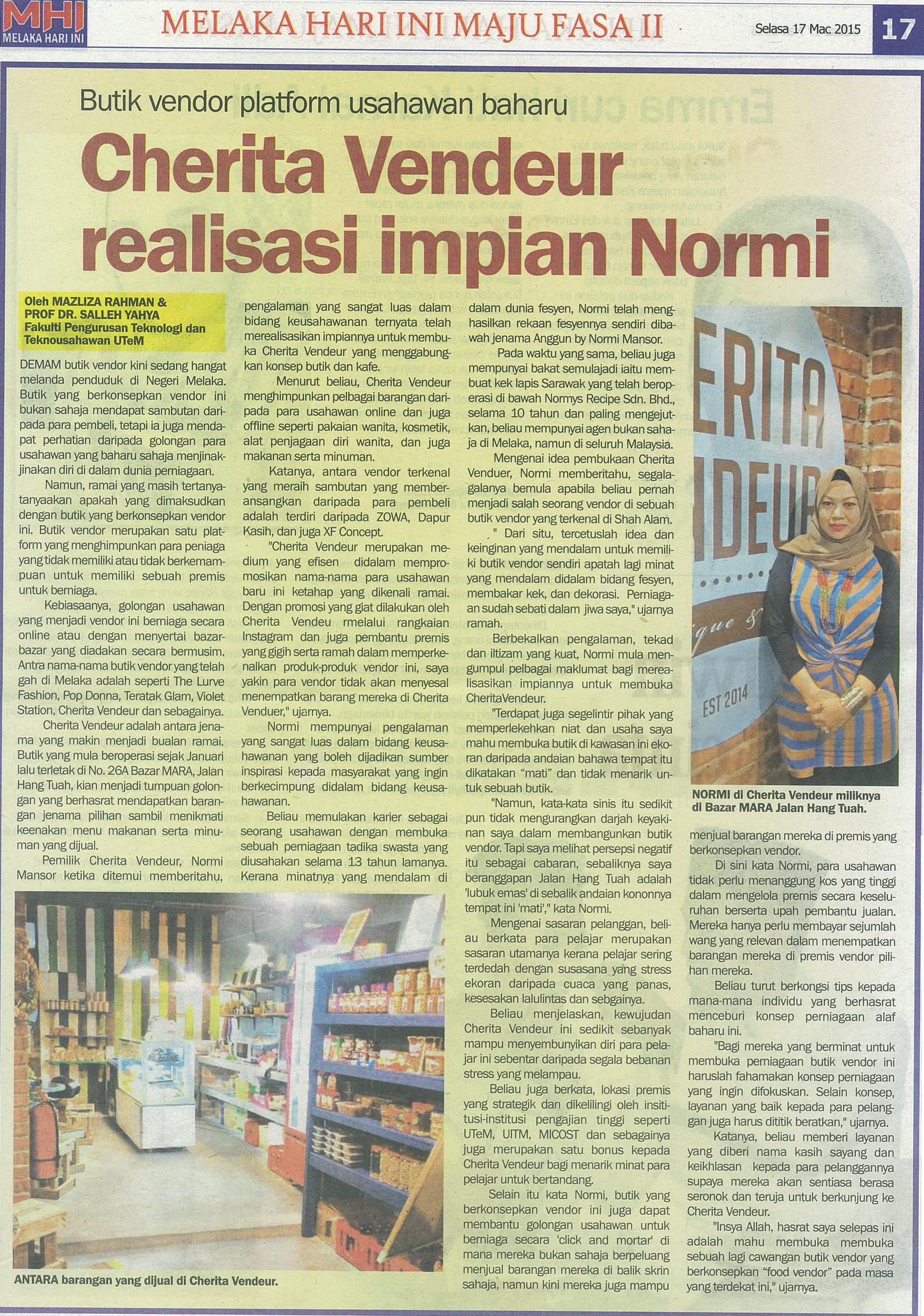 Butik vendor platform usahawan baharu ( Cherita Vendeur realisasi impian Normi)