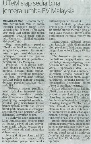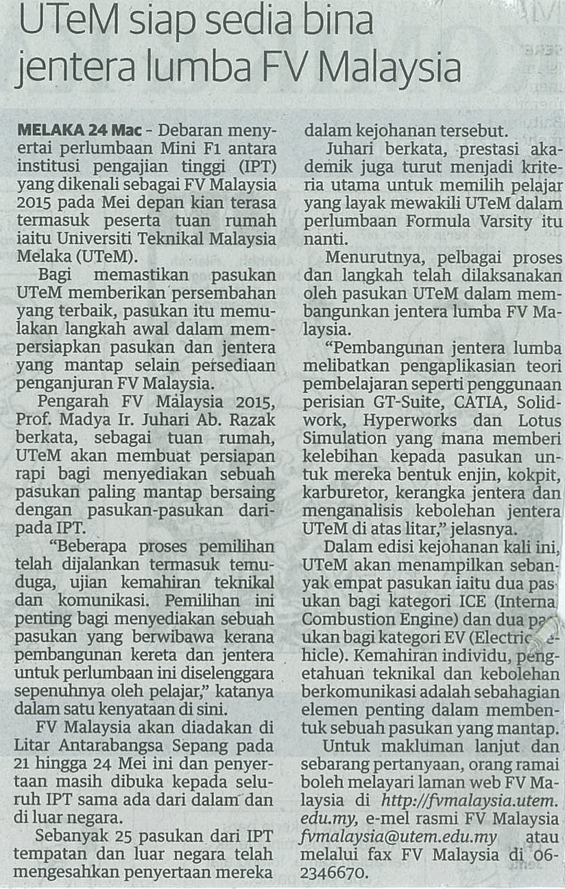 UTeM siap sedia bina jentera lumba FV Malaysia